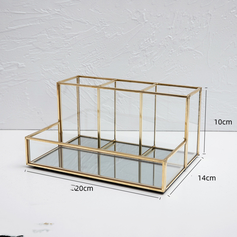 Glass Makeup Organizer Bathroom Cosmetic Organizer With Golden